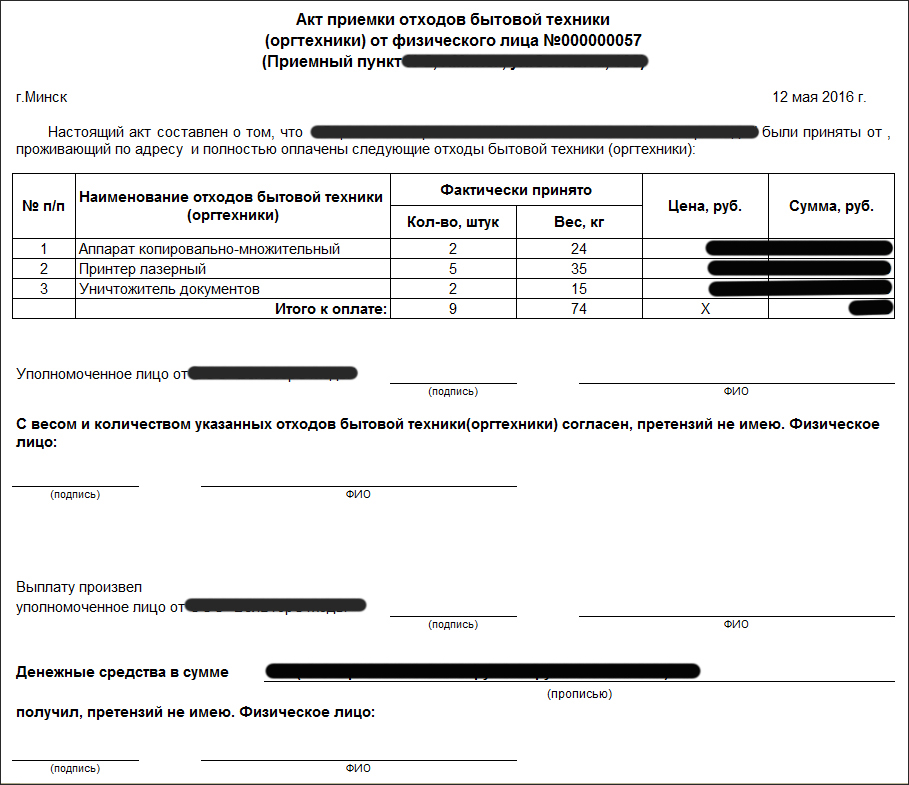 Для учета приемки техники от физических лиц предусмотрен документ "Акт приемки физ.лица". Этим документом фиксируется техника, сданная от физических лиц с предоставлением отчетности в ведомственные организации.
