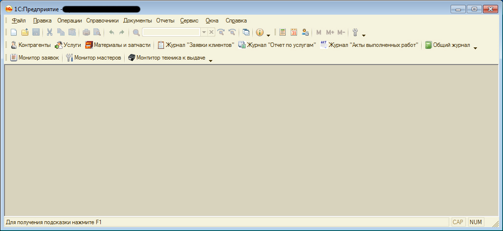 Главное окно разработанной конфигурации выглядит следующим образом: