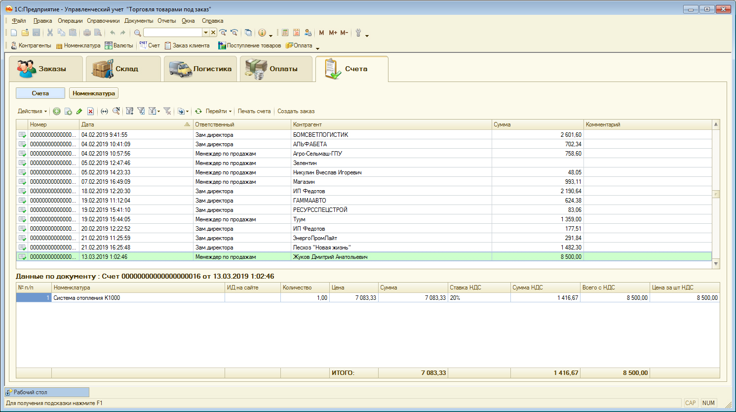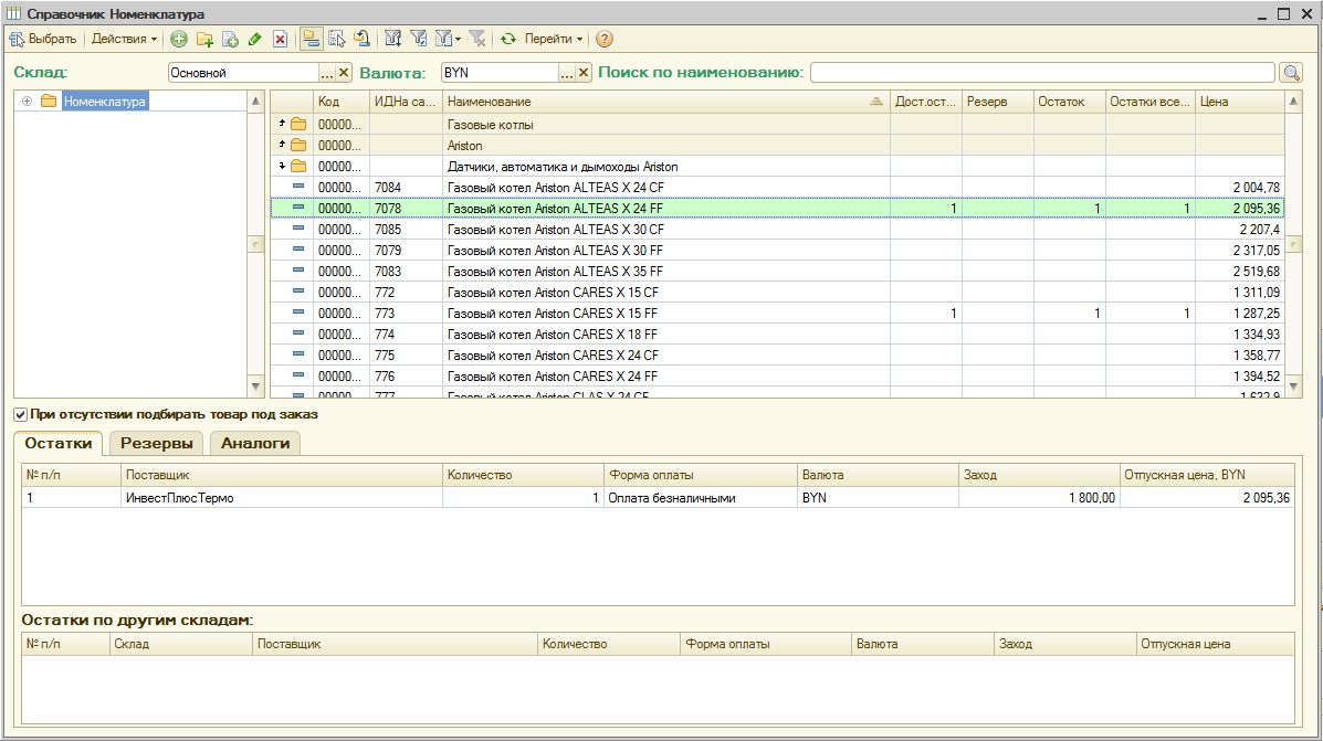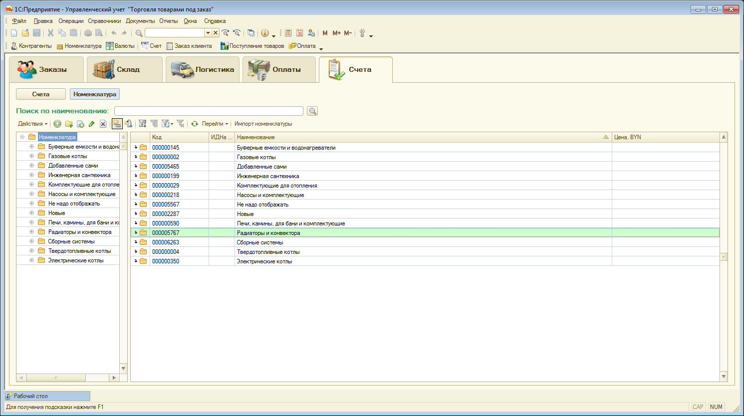 Конфигурация 1С для автоматизации фирмы по торговле под заказ отопительным оборудованием: