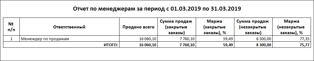 Отчет "Отчет по менеджерам" выглядит следующим образом: