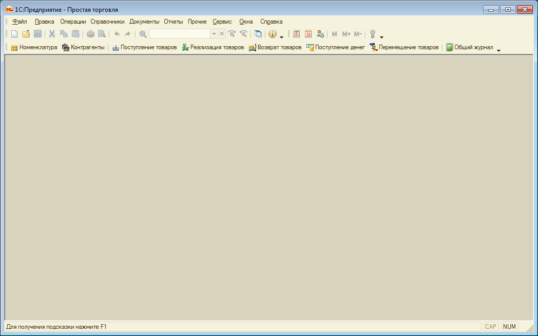 Главное окно разработанной конфигурации выглядит следующим образом: