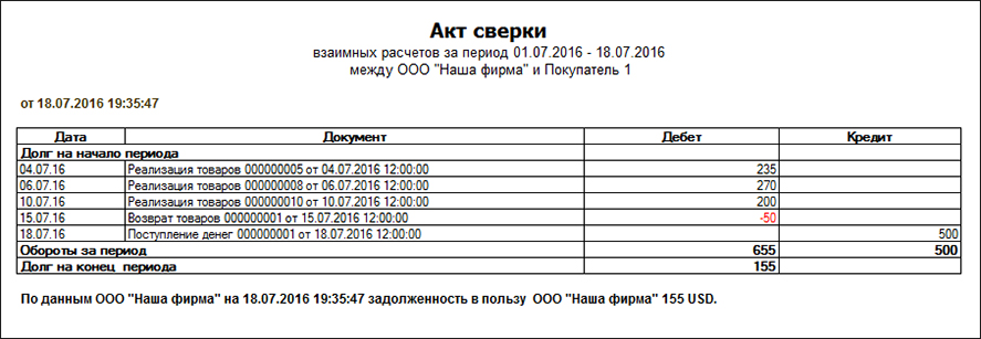 Отчет "Дебиторская задолженность" выглядит следующим образом: