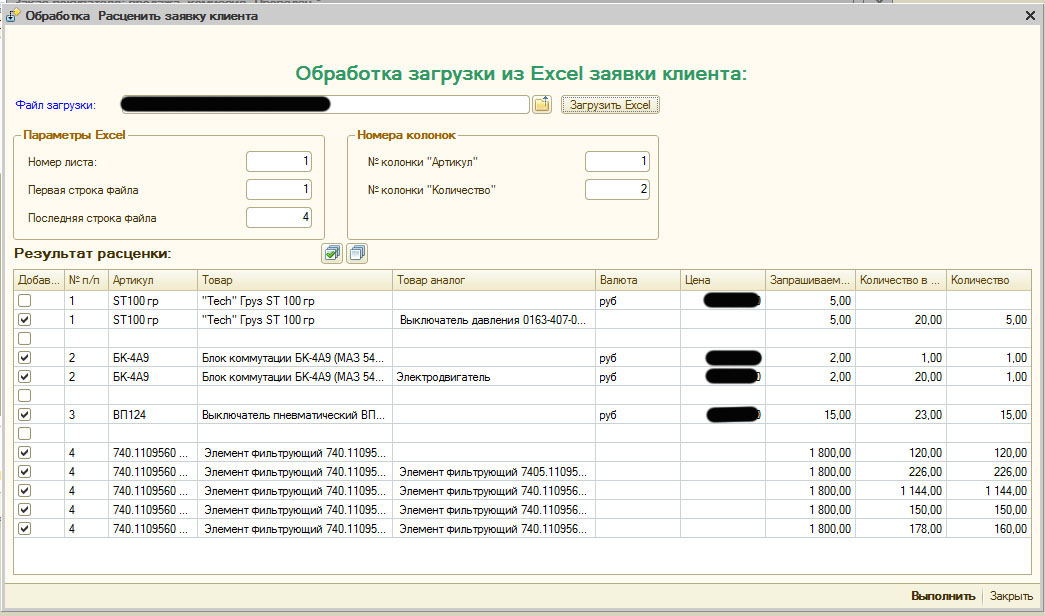 Задача: Необходимо было создать модуль для продажи автозапчастей и встроить в существующую конфигурацию клиента. Нужно было добавить в конфигурацию систему аналогов запчастей, систему применимости запчастей, доработать подбор в документы, чтобы помимо остатков по нужной запчасти, показывались остатки по аналогам. Доработать документ "Заказ покупателя", чтобы можно было расценивать заявки покупателей (ввиде Excel) по запчастям и их аналогам.