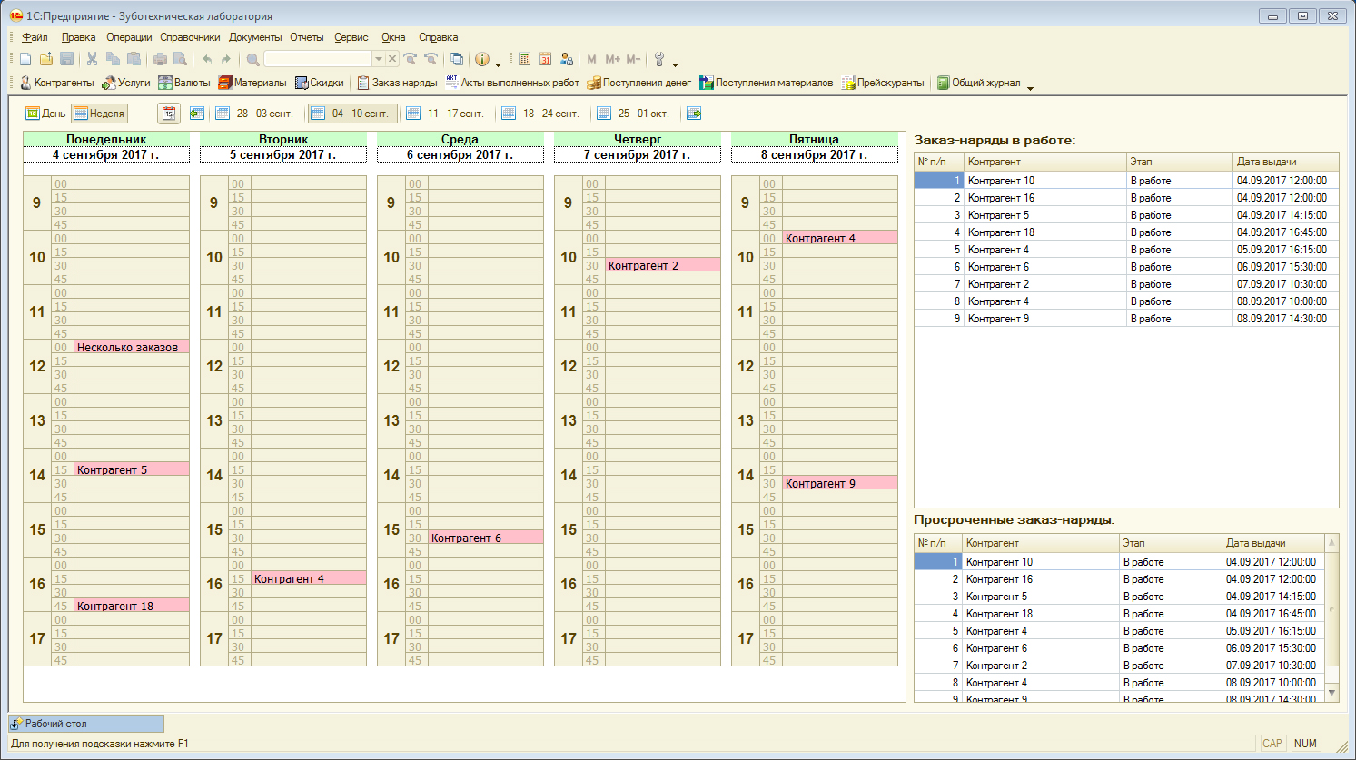 - 1) Реализовать рабочее место администратора лаборатории, в виде календаря с отображением заказов клиентов по датам, а также списки текущих заказов и просроченных заказов;