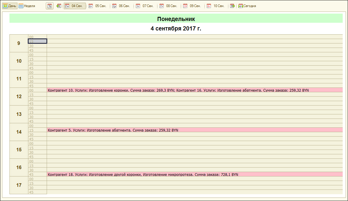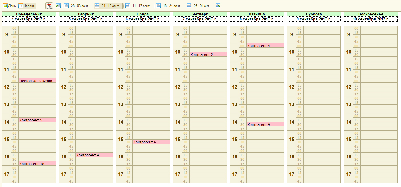 У главного окна "Рабочий стол" два режима вывод информации по заказам - "день" и "неделя":