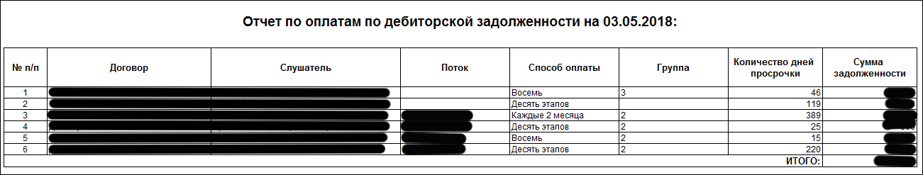 Отчет по дебиторской задолженности: