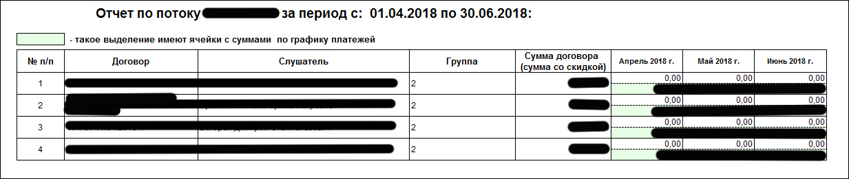 Отчет по оплатам по договорам: